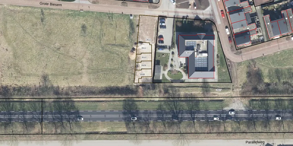 Het perceel waarop Grote Biesem 9 staat heeft een oppervlakte van 74 m². Dit is een klein perceel. De perceeloppervlakte wordt geregistreerd door het Kadaster. Gedetailleerde informatie over de maten van dit perceel kunt u vinden in het rapport Kadastrale kaart met maatvoering van Grote Biesem 9.