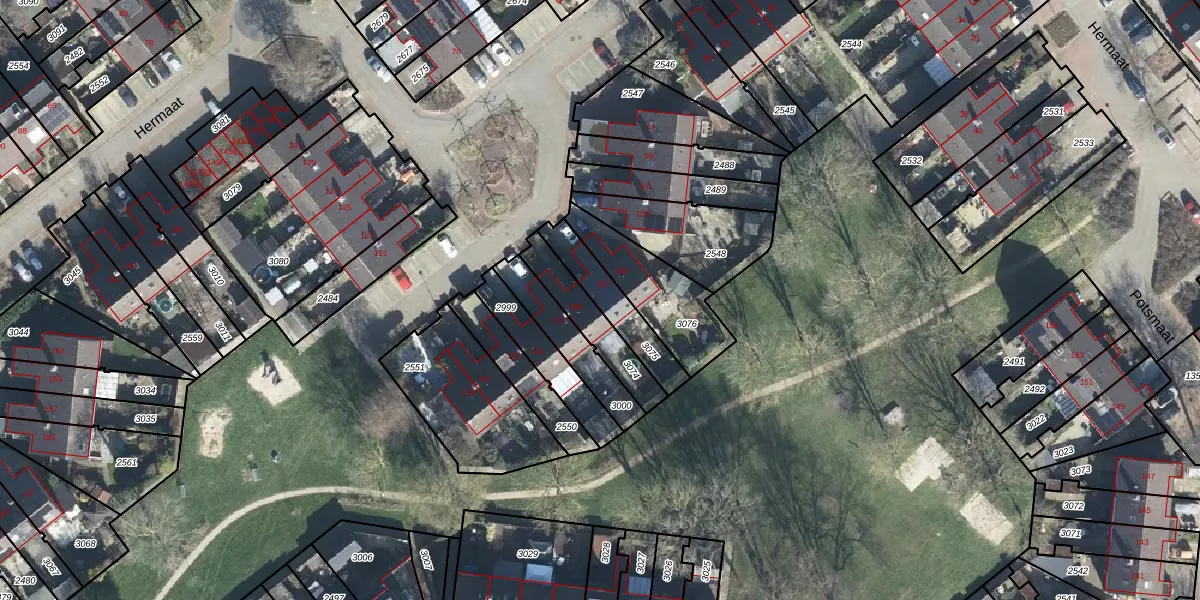 Het perceel waarop Hermaat 107 staat heeft een oppervlakte van 165 m². Dit is een middelgroot perceel. De perceeloppervlakte wordt geregistreerd door het Kadaster. Gedetailleerde informatie over de maten van dit perceel kunt u vinden in het rapport Kadastrale kaart met maatvoering van Hermaat 107.