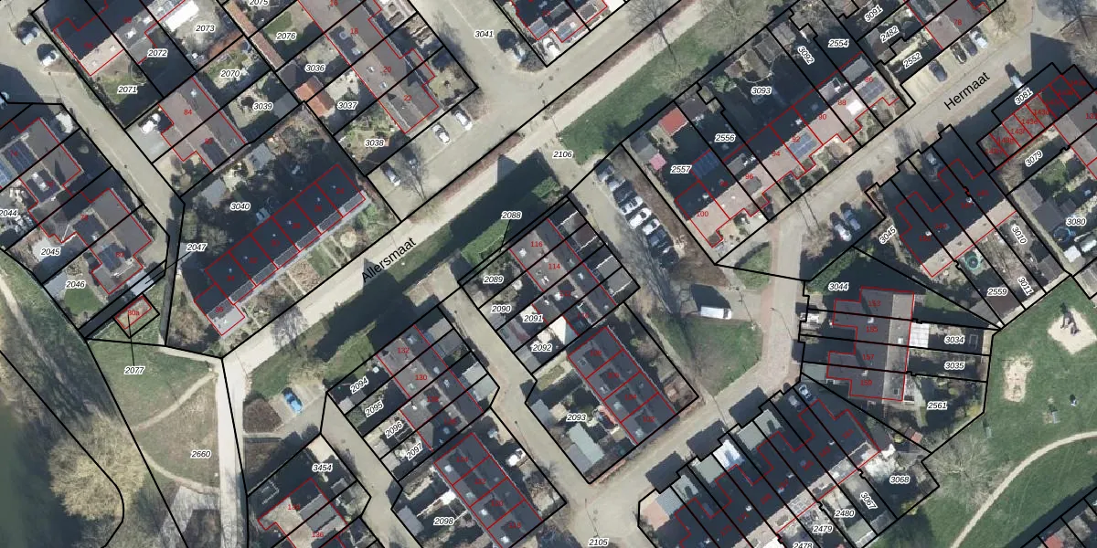 Gebruik de zoekbalk of klik op een perceel voor informatie over de adressen binnen dit perceel.
