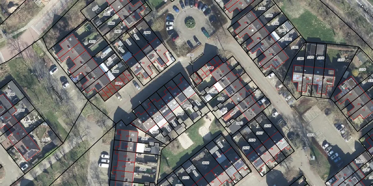 Gebruik de zoekbalk of klik op een perceel voor informatie over de adressen binnen dit perceel.