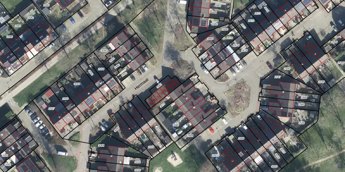 Het perceel waarop Hermaat 143-b staat heeft een oppervlakte van 174 m². Dit is een middelgroot perceel. De perceeloppervlakte wordt geregistreerd door het Kadaster. Gedetailleerde informatie over de maten van dit perceel kunt u vinden in het rapport Kadastrale kaart met maatvoering van Hermaat 143-b.