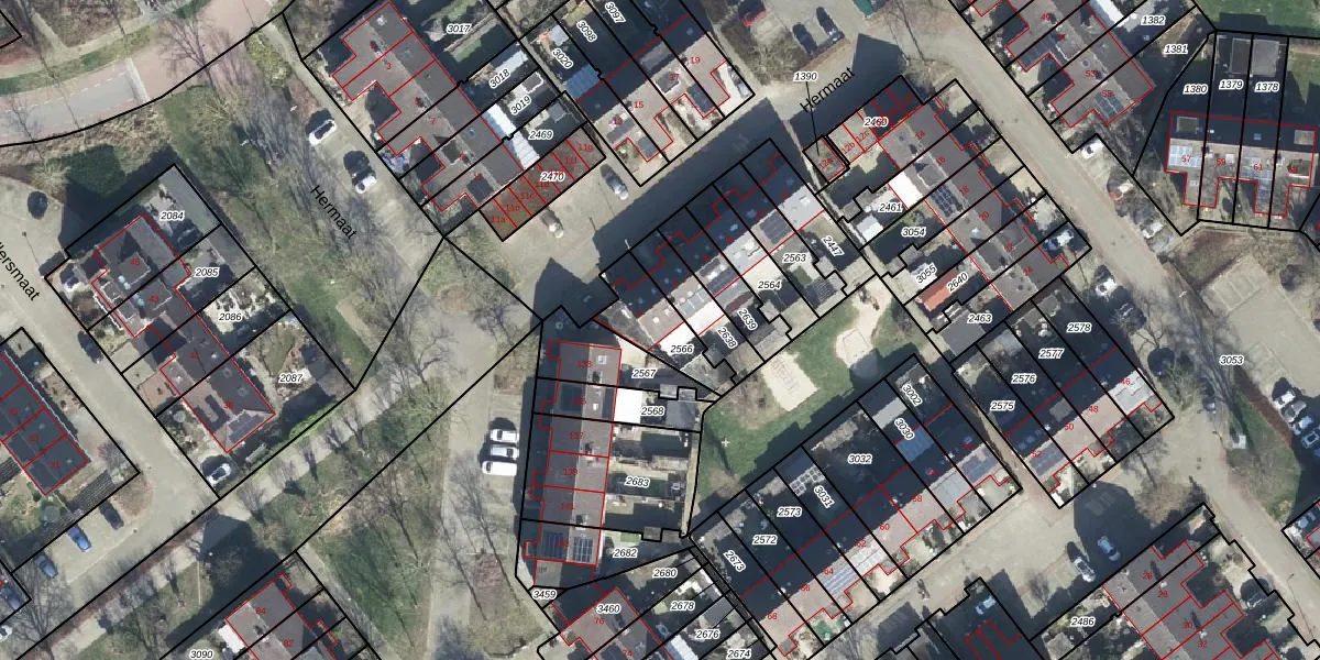 Het perceel waarop Hermaat 2 staat heeft een oppervlakte van 173 m². Dit is een middelgroot perceel. De perceeloppervlakte wordt geregistreerd door het Kadaster. Gedetailleerde informatie over de maten van dit perceel kunt u vinden in het rapport Kadastrale kaart met maatvoering van Hermaat 2.