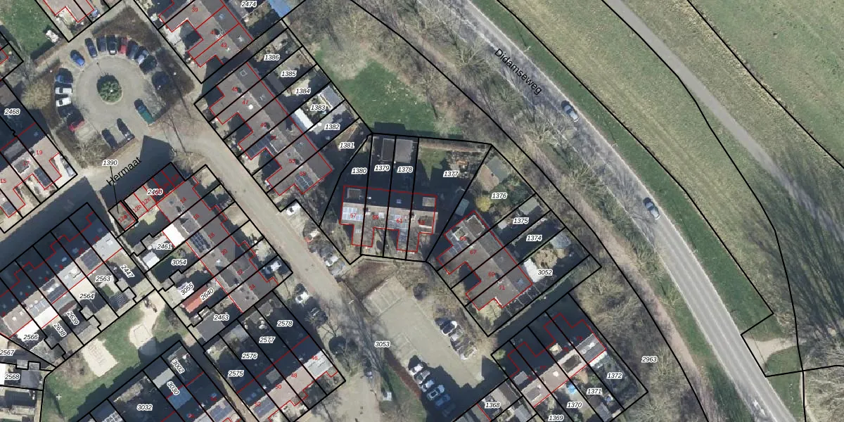 Hermaat 63 is gelegen op kadastraal perceel DBG02E1377. Deze kadastrale aanduiding is uniek en wordt gebruikt door het Kadaster om eigendomsrechten en andere zakelijke rechten vast te leggen. Het perceel maakt onderdeel uit van de kadastrale gemeente Doesburg.