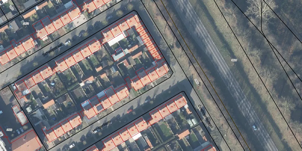 Het perceel waarop Huygenlaan 23 staat heeft een oppervlakte van 4923 m². Dit is een zeer groot perceel. De perceeloppervlakte wordt geregistreerd door het Kadaster. Gedetailleerde informatie over de maten van dit perceel kunt u vinden in het rapport Kadastrale kaart met maatvoering van Huygenlaan 23.