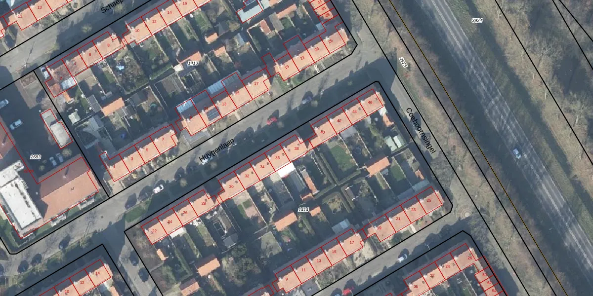 Huygenlaan 38 is gelegen op kadastraal perceel DBG02B1414. Deze kadastrale aanduiding is uniek en wordt gebruikt door het Kadaster om eigendomsrechten en andere zakelijke rechten vast te leggen. Het perceel maakt onderdeel uit van de kadastrale gemeente Doesburg.
