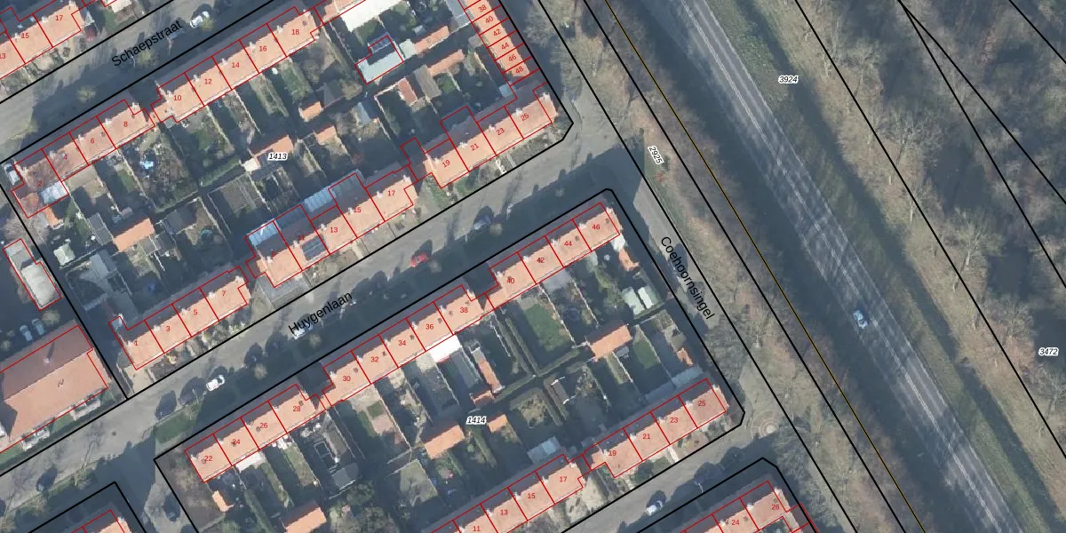 Huygenlaan 42 is gelegen op kadastraal perceel DBG02B1414. Deze kadastrale aanduiding is uniek en wordt gebruikt door het Kadaster om eigendomsrechten en andere zakelijke rechten vast te leggen. Het perceel maakt onderdeel uit van de kadastrale gemeente Doesburg.