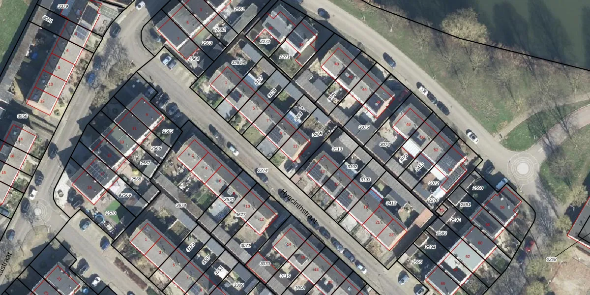 Het perceel waarop Hyacinthstraat 11 staat heeft een oppervlakte van 388 m². Dit is een groot perceel. De perceeloppervlakte wordt geregistreerd door het Kadaster. Gedetailleerde informatie over de maten van dit perceel kunt u vinden in het rapport Kadastrale kaart met maatvoering van Hyacinthstraat 11.