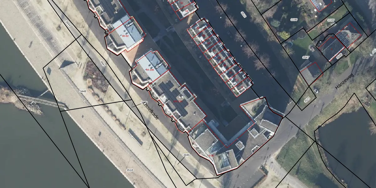 Het perceel waarop IJsselkade 130 staat heeft een oppervlakte van 1,0 ha. Dit is een zeer groot perceel. De perceeloppervlakte wordt geregistreerd door het Kadaster. Gedetailleerde informatie over de maten van dit perceel kunt u vinden in het rapport Kadastrale kaart met maatvoering van IJsselkade 130.