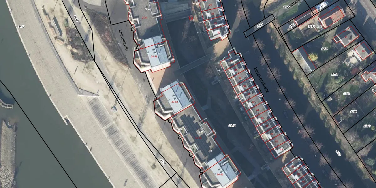 Het perceel waarop IJsselkade 50 staat heeft een oppervlakte van 1,0 ha. Dit is een zeer groot perceel. De perceeloppervlakte wordt geregistreerd door het Kadaster. Gedetailleerde informatie over de maten van dit perceel kunt u vinden in het rapport Kadastrale kaart met maatvoering van IJsselkade 50.