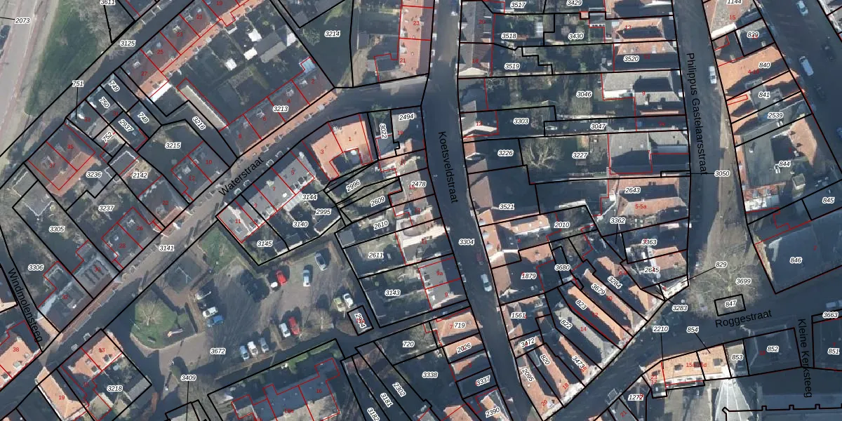 Gebruik de zoekbalk of klik op een perceel voor informatie over de adressen binnen dit perceel.
