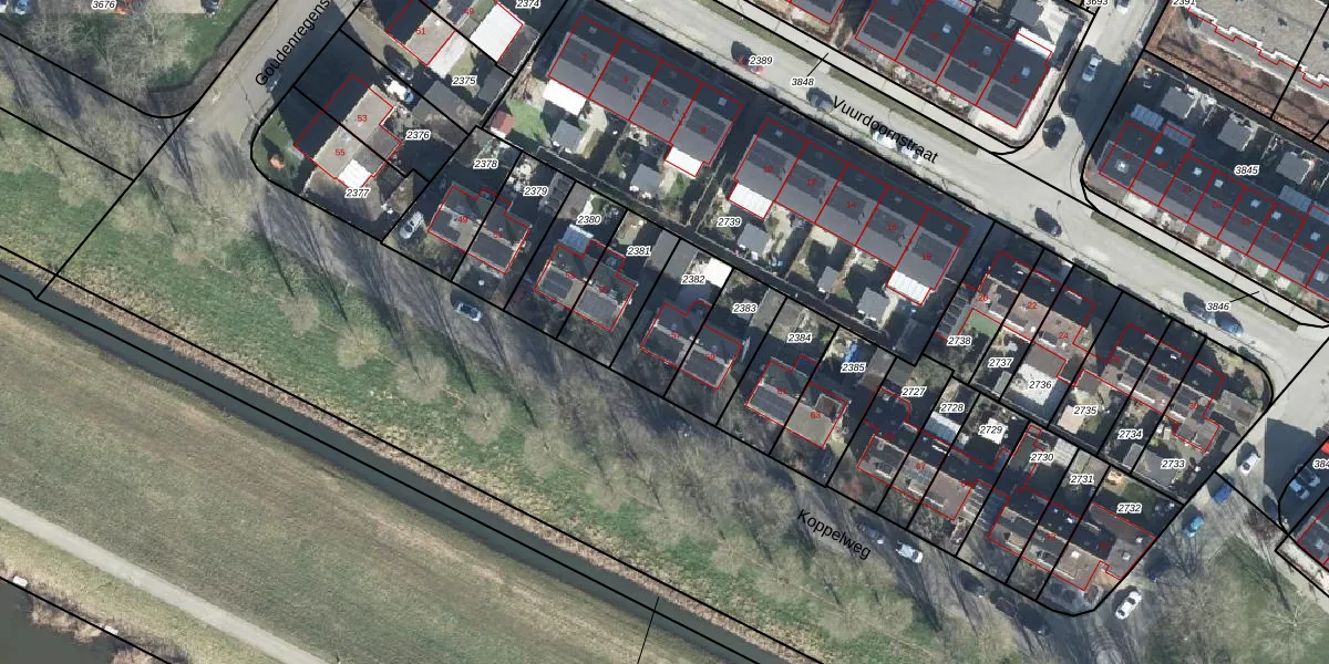 Gebruik de zoekbalk of klik op een perceel voor informatie over de adressen binnen dit perceel.