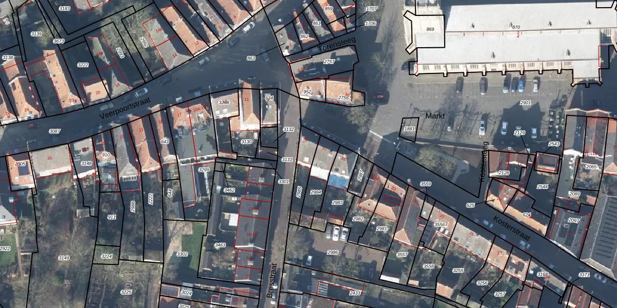 Kosterstraat 39 is gelegen op kadastraal perceel DBG02C2985. Deze kadastrale aanduiding is uniek en wordt gebruikt door het Kadaster om eigendomsrechten en andere zakelijke rechten vast te leggen. Het perceel maakt onderdeel uit van de kadastrale gemeente Doesburg.