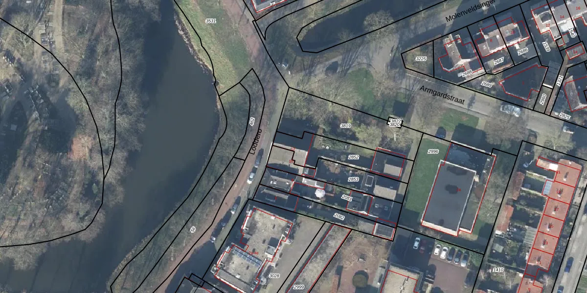 Gebruik de zoekbalk of klik op een perceel voor informatie over de adressen binnen dit perceel.