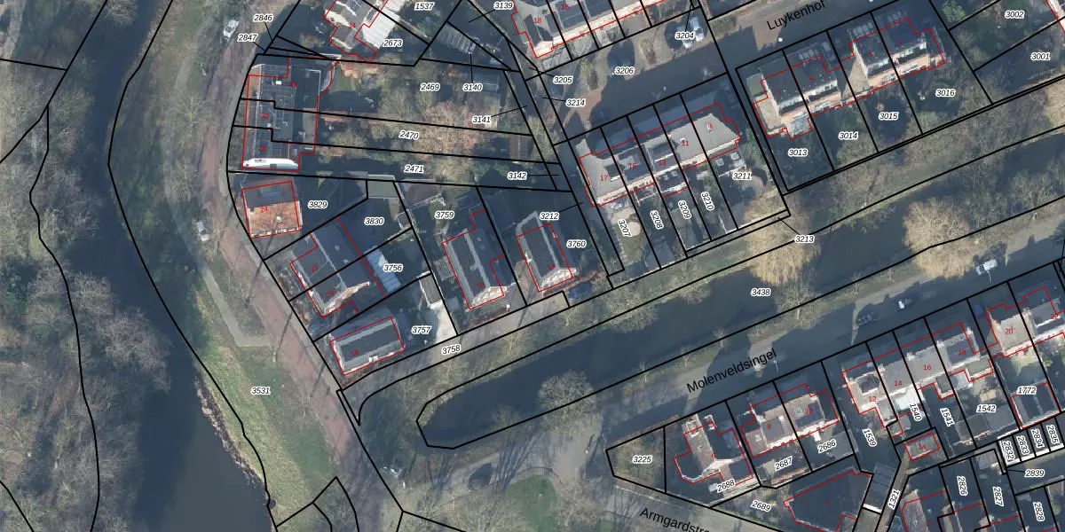 Gebruik de zoekbalk of klik op een perceel voor informatie over de adressen binnen dit perceel.