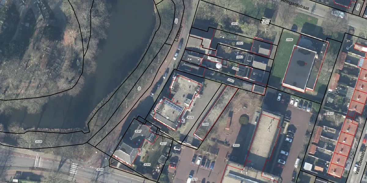 Het perceel waarop Loddero 4-e staat heeft een oppervlakte van 905 m². Dit is een groot perceel. De perceeloppervlakte wordt geregistreerd door het Kadaster. Gedetailleerde informatie over de maten van dit perceel kunt u vinden in het rapport Kadastrale kaart met maatvoering van Loddero 4-e.
