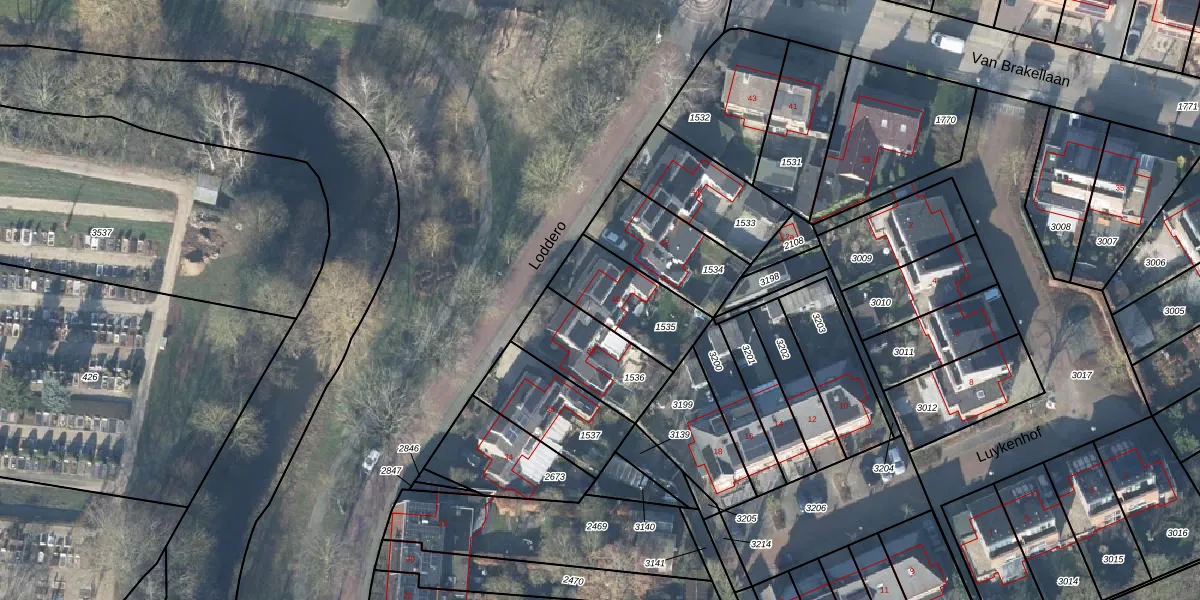 Gebruik de zoekbalk of klik op een perceel voor informatie over de adressen binnen dit perceel.
