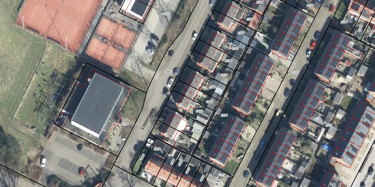 Gebruik de zoekbalk of klik op een perceel voor informatie over de adressen binnen dit perceel.