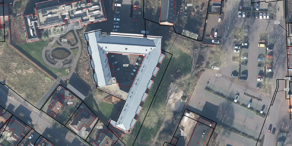 Het perceel waarop Maartenshof 37 staat heeft een oppervlakte van 2690 m². Dit is een zeer groot perceel. De perceeloppervlakte wordt geregistreerd door het Kadaster. Gedetailleerde informatie over de maten van dit perceel kunt u vinden in het rapport Kadastrale kaart met maatvoering van Maartenshof 37.