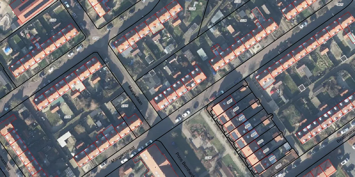 Het perceel waarop Margrietstraat 17 staat heeft een oppervlakte van 3880 m². Dit is een zeer groot perceel. De perceeloppervlakte wordt geregistreerd door het Kadaster. Gedetailleerde informatie over de maten van dit perceel kunt u vinden in het rapport Kadastrale kaart met maatvoering van Margrietstraat 17.