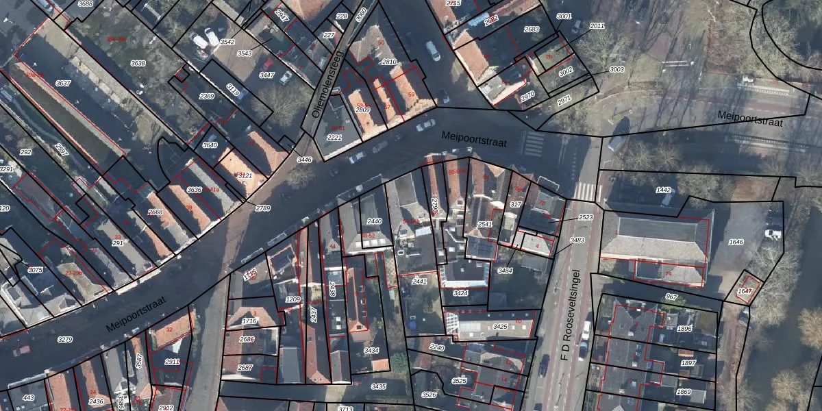 Het perceel waarop Meipoortstraat 54-b staat heeft een oppervlakte van 393 m². Dit is een groot perceel. De perceeloppervlakte wordt geregistreerd door het Kadaster. Gedetailleerde informatie over de maten van dit perceel kunt u vinden in het rapport Kadastrale kaart met maatvoering van Meipoortstraat 54-b.