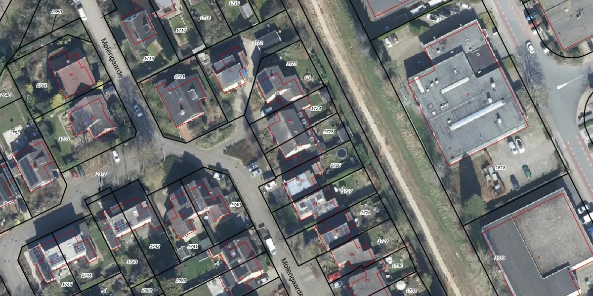 Het perceel waarop Molengaarde 17 staat heeft een oppervlakte van 288 m². Dit is een middelgroot perceel. De perceeloppervlakte wordt geregistreerd door het Kadaster. Gedetailleerde informatie over de maten van dit perceel kunt u vinden in het rapport Kadastrale kaart met maatvoering van Molengaarde 17.