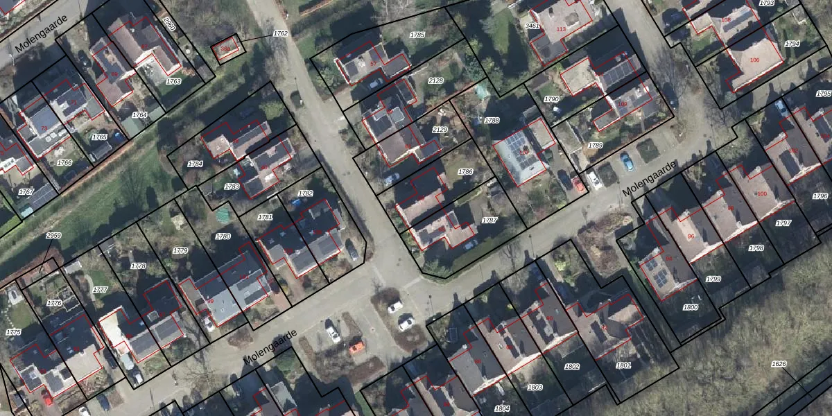 Gebruik de zoekbalk of klik op een perceel voor informatie over de adressen binnen dit perceel.