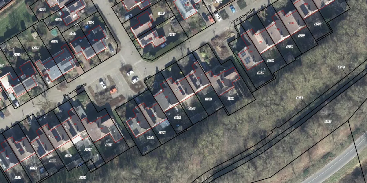 Het perceel waarop Molengaarde 88 staat heeft een oppervlakte van 343 m². Dit is een groot perceel. De perceeloppervlakte wordt geregistreerd door het Kadaster. Gedetailleerde informatie over de maten van dit perceel kunt u vinden in het rapport Kadastrale kaart met maatvoering van Molengaarde 88.