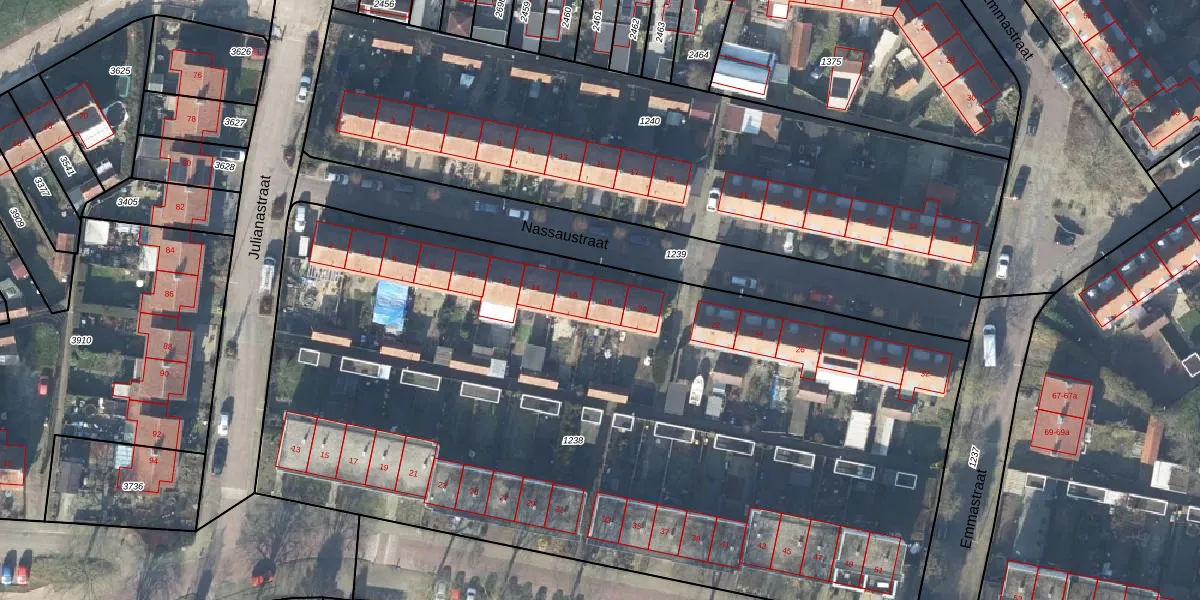 Het perceel waarop Nassaustraat 18 staat heeft een oppervlakte van 5688 m². Dit is een zeer groot perceel. De perceeloppervlakte wordt geregistreerd door het Kadaster. Gedetailleerde informatie over de maten van dit perceel kunt u vinden in het rapport Kadastrale kaart met maatvoering van Nassaustraat 18.