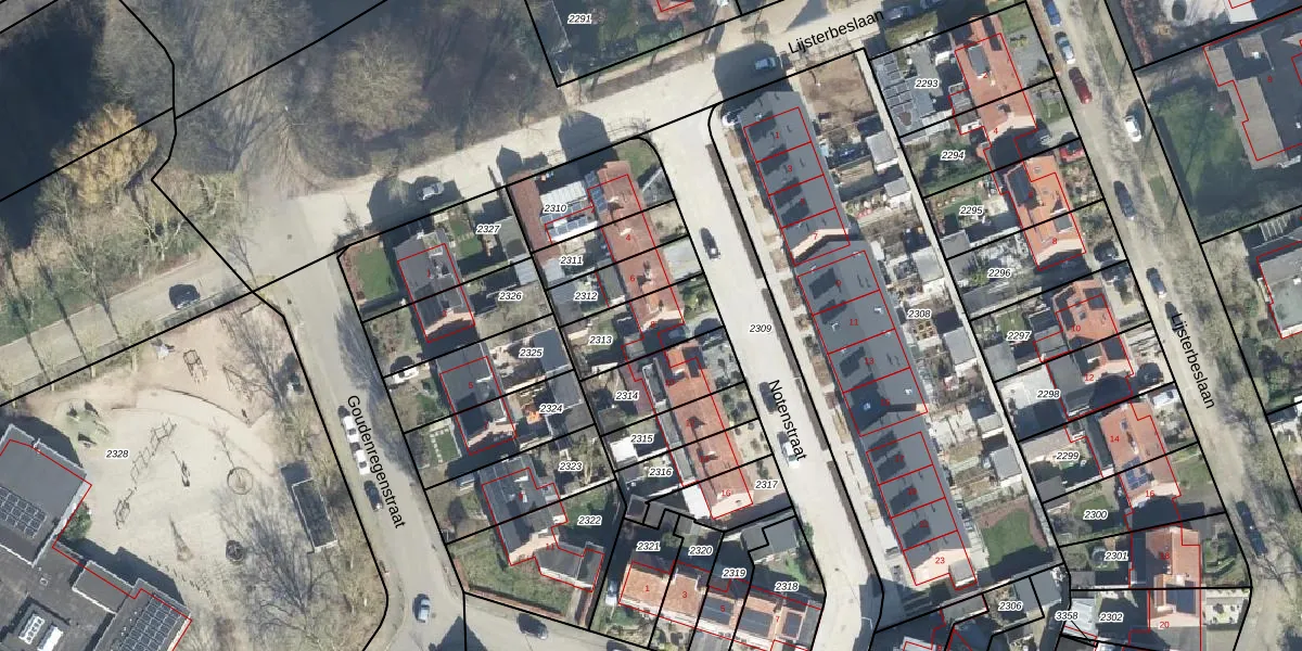 Het perceel waarop Notenstraat 8 staat heeft een oppervlakte van 216 m². Dit is een middelgroot perceel. De perceeloppervlakte wordt geregistreerd door het Kadaster. Gedetailleerde informatie over de maten van dit perceel kunt u vinden in het rapport Kadastrale kaart met maatvoering van Notenstraat 8.