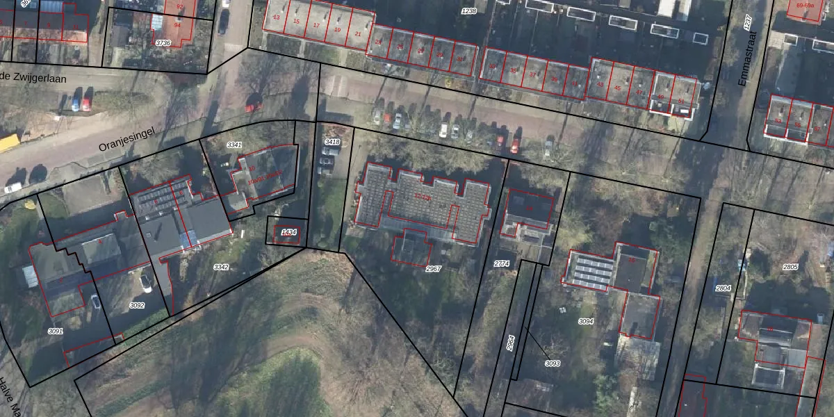 Het perceel waarop Oranjesingel 12 staat heeft een oppervlakte van 1580 m². Dit is een zeer groot perceel. De perceeloppervlakte wordt geregistreerd door het Kadaster. Gedetailleerde informatie over de maten van dit perceel kunt u vinden in het rapport Kadastrale kaart met maatvoering van Oranjesingel 12.