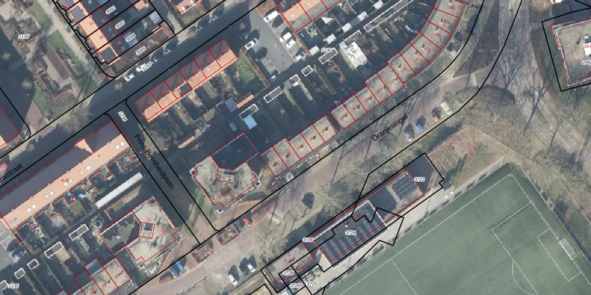 Het perceel waarop Oranjesingel 159 staat heeft een oppervlakte van 6935 m². Dit is een zeer groot perceel. De perceeloppervlakte wordt geregistreerd door het Kadaster. Gedetailleerde informatie over de maten van dit perceel kunt u vinden in het rapport Kadastrale kaart met maatvoering van Oranjesingel 159.