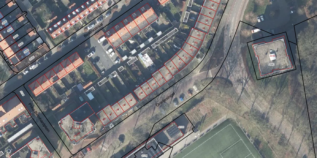 Het perceel waarop Oranjesingel 171 staat heeft een oppervlakte van 6935 m². Dit is een zeer groot perceel. De perceeloppervlakte wordt geregistreerd door het Kadaster. Gedetailleerde informatie over de maten van dit perceel kunt u vinden in het rapport Kadastrale kaart met maatvoering van Oranjesingel 171.