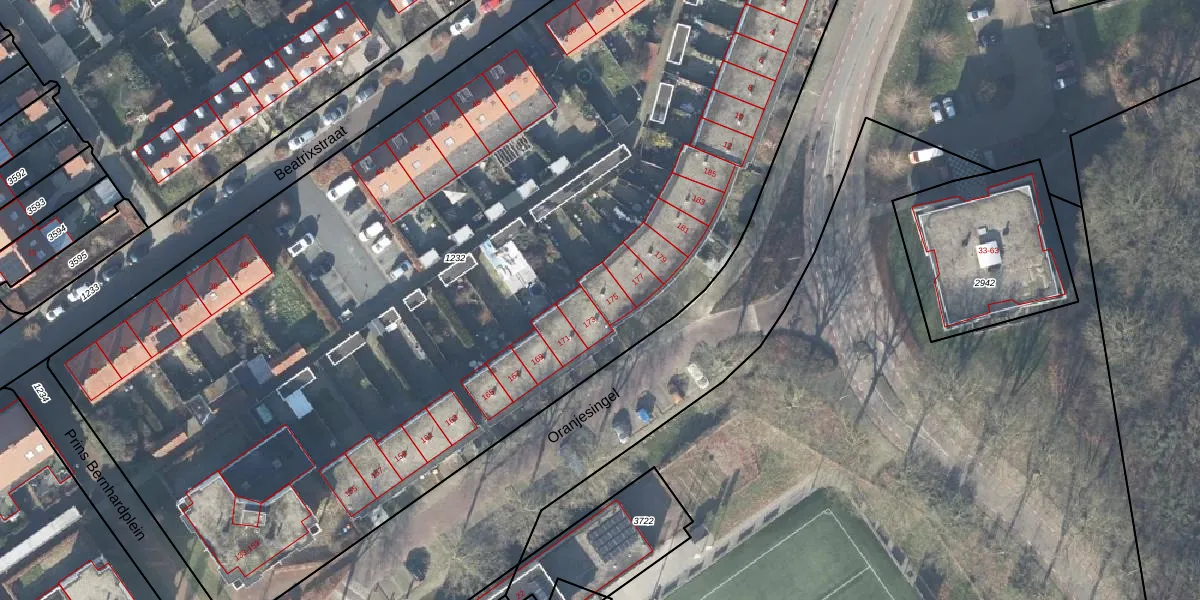 Het perceel waarop Oranjesingel 175 staat heeft een oppervlakte van 6935 m². Dit is een zeer groot perceel. De perceeloppervlakte wordt geregistreerd door het Kadaster. Gedetailleerde informatie over de maten van dit perceel kunt u vinden in het rapport Kadastrale kaart met maatvoering van Oranjesingel 175.