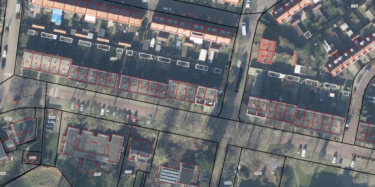 Het perceel waarop Oranjesingel 47 staat heeft een oppervlakte van 5688 m². Dit is een zeer groot perceel. De perceeloppervlakte wordt geregistreerd door het Kadaster. Gedetailleerde informatie over de maten van dit perceel kunt u vinden in het rapport Kadastrale kaart met maatvoering van Oranjesingel 47.