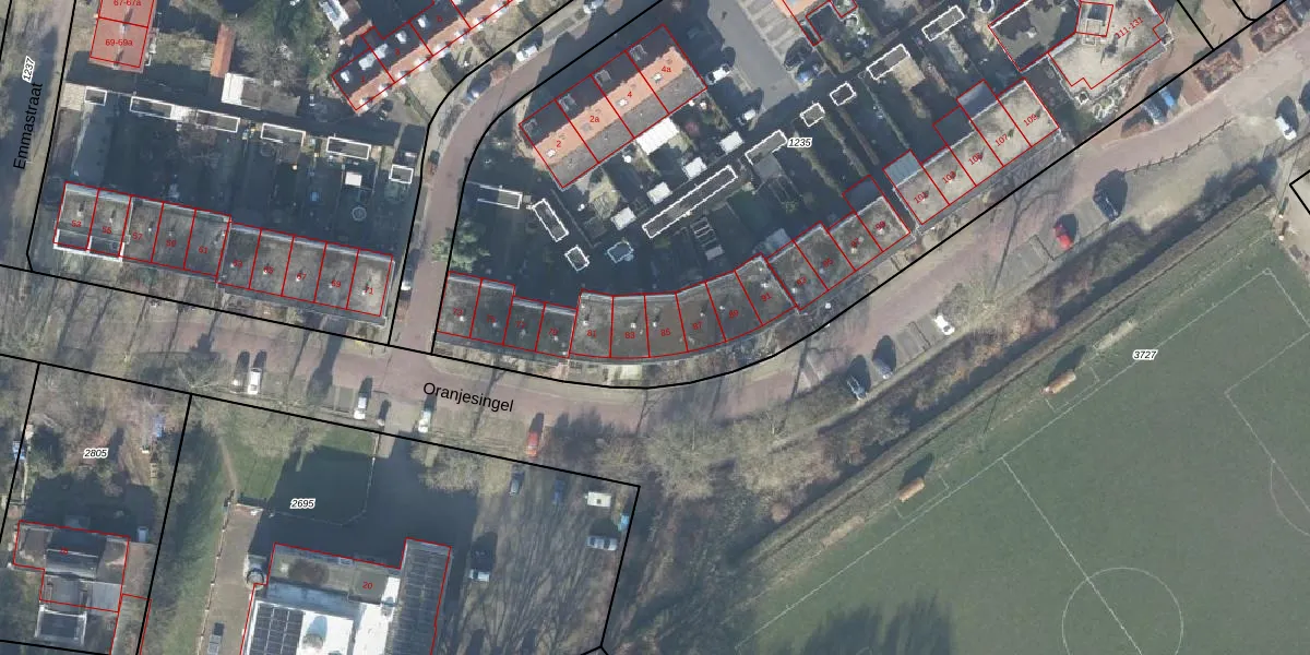 Het perceel waarop Oranjesingel 85 staat heeft een oppervlakte van 6035 m². Dit is een zeer groot perceel. De perceeloppervlakte wordt geregistreerd door het Kadaster. Gedetailleerde informatie over de maten van dit perceel kunt u vinden in het rapport Kadastrale kaart met maatvoering van Oranjesingel 85.