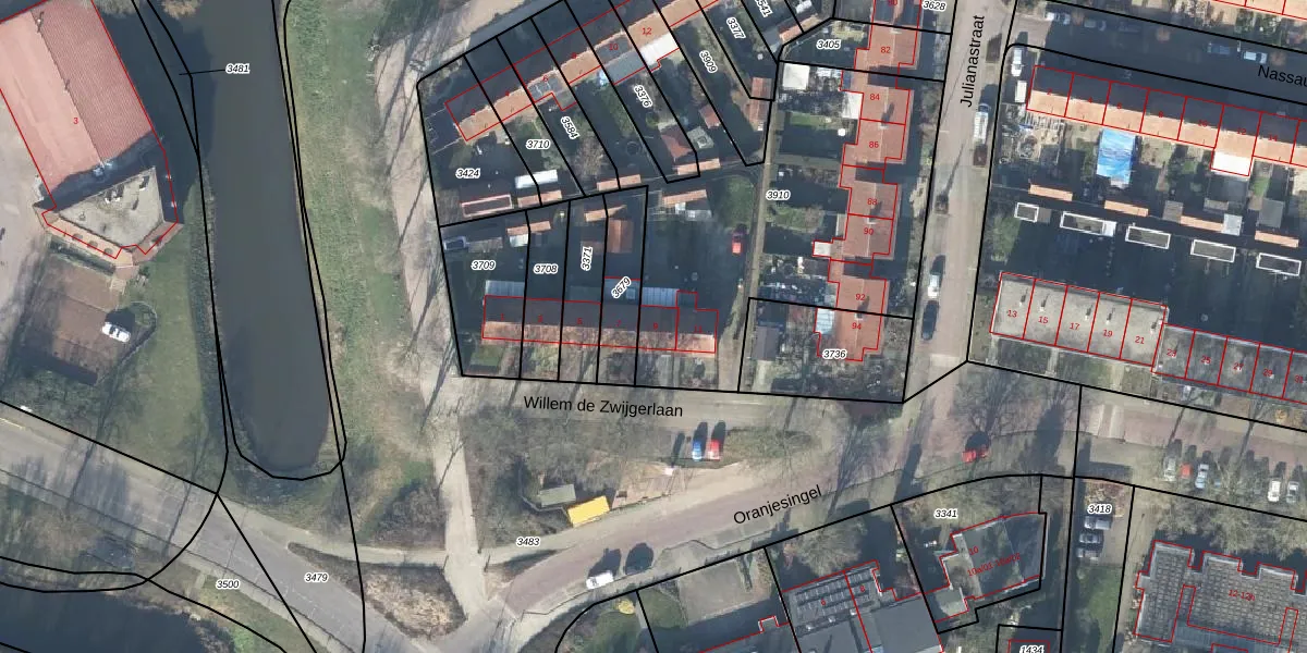 Het perceel waarop Oranjesingel 9 staat heeft een oppervlakte van 1837 m². Dit is een zeer groot perceel. De perceeloppervlakte wordt geregistreerd door het Kadaster. Gedetailleerde informatie over de maten van dit perceel kunt u vinden in het rapport Kadastrale kaart met maatvoering van Oranjesingel 9.