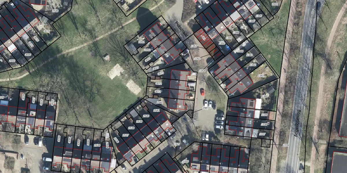 Het perceel waarop Potsmaat 145 staat heeft een oppervlakte van 153 m². Dit is een middelgroot perceel. De perceeloppervlakte wordt geregistreerd door het Kadaster. Gedetailleerde informatie over de maten van dit perceel kunt u vinden in het rapport Kadastrale kaart met maatvoering van Potsmaat 145.