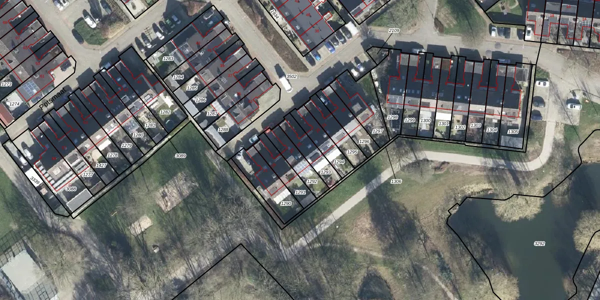 Het perceel waarop Potsmaat 25 staat heeft een oppervlakte van 149 m². Dit is een middelgroot perceel. De perceeloppervlakte wordt geregistreerd door het Kadaster. Gedetailleerde informatie over de maten van dit perceel kunt u vinden in het rapport Kadastrale kaart met maatvoering van Potsmaat 25.