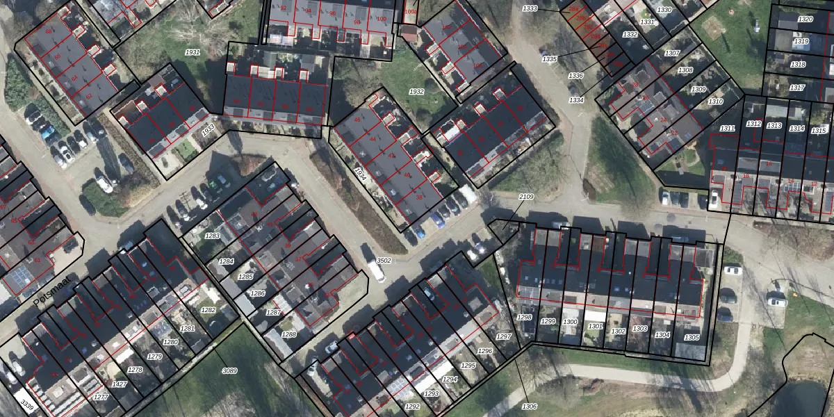 Het perceel waarop Potsmaat 38 staat heeft een oppervlakte van 1330 m². Dit is een zeer groot perceel. De perceeloppervlakte wordt geregistreerd door het Kadaster. Gedetailleerde informatie over de maten van dit perceel kunt u vinden in het rapport Kadastrale kaart met maatvoering van Potsmaat 38.