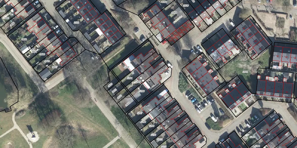 Het perceel waarop Potsmaat 79 staat heeft een oppervlakte van 165 m². Dit is een middelgroot perceel. De perceeloppervlakte wordt geregistreerd door het Kadaster. Gedetailleerde informatie over de maten van dit perceel kunt u vinden in het rapport Kadastrale kaart met maatvoering van Potsmaat 79.