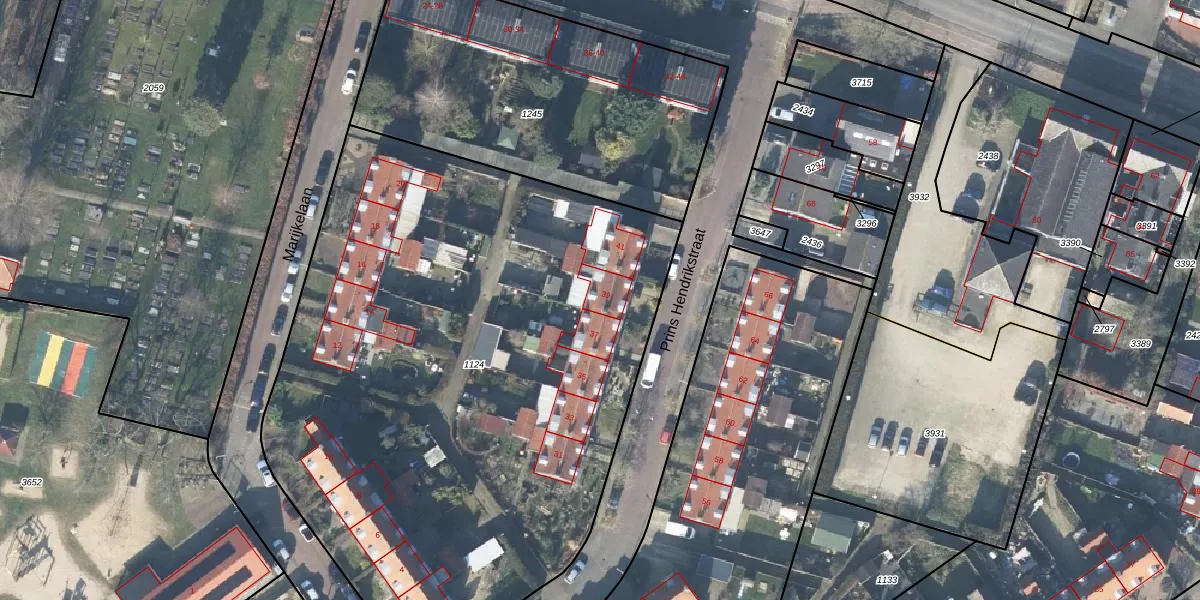Het perceel waarop Prins Hendrikstraat 39 staat heeft een oppervlakte van 4000 m². Dit is een zeer groot perceel. De perceeloppervlakte wordt geregistreerd door het Kadaster. Gedetailleerde informatie over de maten van dit perceel kunt u vinden in het rapport Kadastrale kaart met maatvoering van Prins Hendrikstraat 39.
