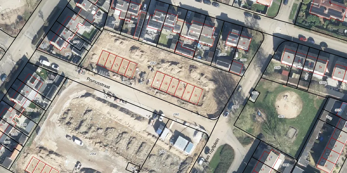 Het perceel waarop Prunusstraat 15 staat heeft een oppervlakte van 2336 m². Dit is een zeer groot perceel. De perceeloppervlakte wordt geregistreerd door het Kadaster. Gedetailleerde informatie over de maten van dit perceel kunt u vinden in het rapport Kadastrale kaart met maatvoering van Prunusstraat 15.