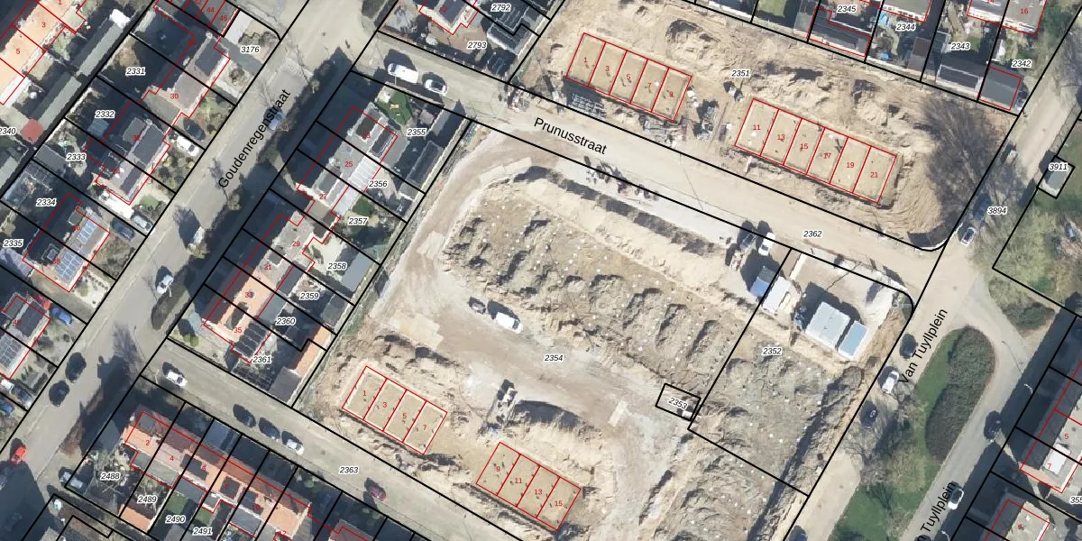 Prunusstraat 6 is gelegen op kadastraal perceel DBG02B2354. Deze kadastrale aanduiding is uniek en wordt gebruikt door het Kadaster om eigendomsrechten en andere zakelijke rechten vast te leggen. Het perceel maakt onderdeel uit van de kadastrale gemeente Doesburg.