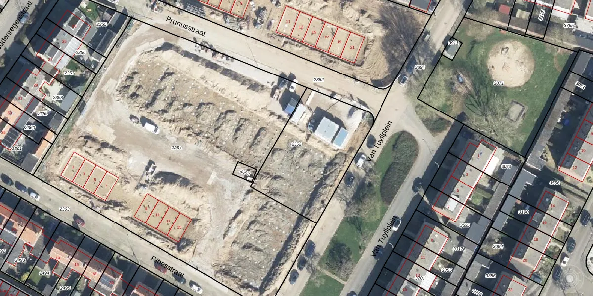 Het perceel waarop Prunusstraat 62 staat heeft een oppervlakte van 1047 m². Dit is een zeer groot perceel. De perceeloppervlakte wordt geregistreerd door het Kadaster. Gedetailleerde informatie over de maten van dit perceel kunt u vinden in het rapport Kadastrale kaart met maatvoering van Prunusstraat 62.