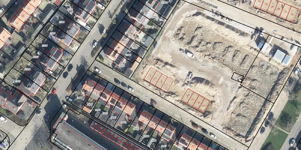 Het perceel waarop Ribesstraat 1 staat heeft een oppervlakte van 5160 m². Dit is een zeer groot perceel. De perceeloppervlakte wordt geregistreerd door het Kadaster. Gedetailleerde informatie over de maten van dit perceel kunt u vinden in het rapport Kadastrale kaart met maatvoering van Ribesstraat 1.