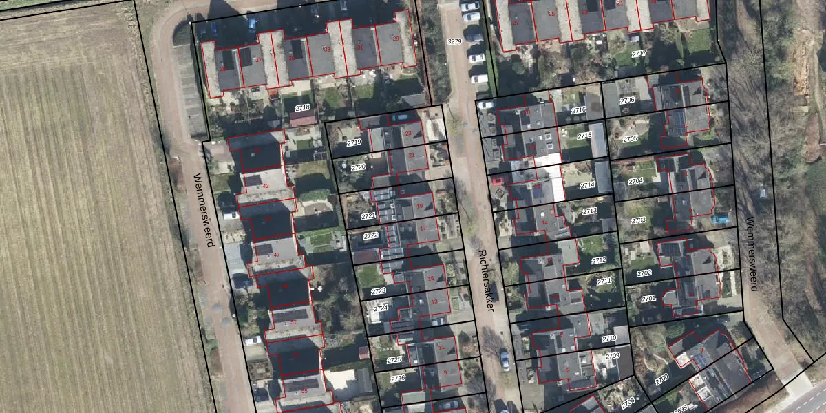 Richtersakker 19 is gelegen op kadastraal perceel DBG02E2721. Deze kadastrale aanduiding is uniek en wordt gebruikt door het Kadaster om eigendomsrechten en andere zakelijke rechten vast te leggen. Het perceel maakt onderdeel uit van de kadastrale gemeente Doesburg.