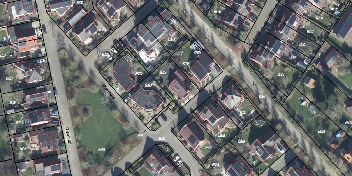 Het perceel waarop Rietmaat 43 staat heeft een oppervlakte van 395 m². Dit is een groot perceel. De perceeloppervlakte wordt geregistreerd door het Kadaster. Gedetailleerde informatie over de maten van dit perceel kunt u vinden in het rapport Kadastrale kaart met maatvoering van Rietmaat 43.