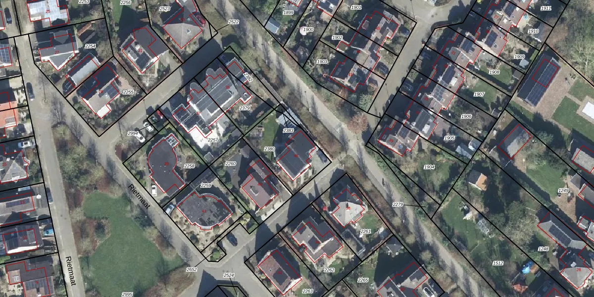 Het perceel waarop Rietmaat 45 staat heeft een oppervlakte van 435 m². Dit is een groot perceel. De perceeloppervlakte wordt geregistreerd door het Kadaster. Gedetailleerde informatie over de maten van dit perceel kunt u vinden in het rapport Kadastrale kaart met maatvoering van Rietmaat 45.