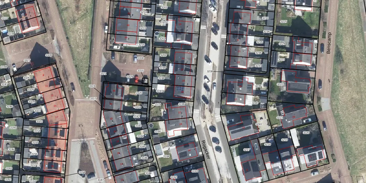 Het perceel waarop Rogacker 20 staat heeft een oppervlakte van 188 m². Dit is een middelgroot perceel. De perceeloppervlakte wordt geregistreerd door het Kadaster. Gedetailleerde informatie over de maten van dit perceel kunt u vinden in het rapport Kadastrale kaart met maatvoering van Rogacker 20.