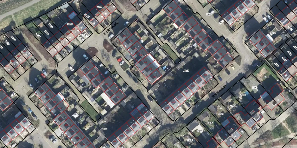 Het perceel waarop Smitsweide 142 staat heeft een oppervlakte van 3650 m². Dit is een zeer groot perceel. De perceeloppervlakte wordt geregistreerd door het Kadaster. Gedetailleerde informatie over de maten van dit perceel kunt u vinden in het rapport Kadastrale kaart met maatvoering van Smitsweide 142.